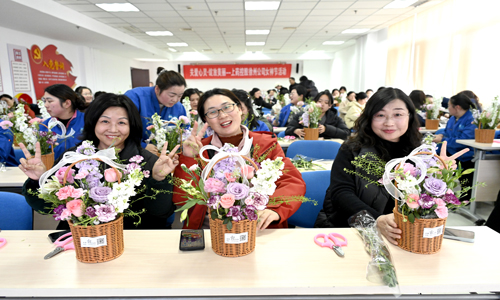 讲座结束后,花香四溢的花艺沙龙拉开帷幕。专业花艺师从花语寓意、色彩搭配到插花技巧娓娓道来,女职工们兴致勃勃地修剪枝叶、构思造型。玫瑰的浪漫、康乃馨的温暖、洋牡丹的雅致,在一修一剪之间,一篮篮错落有致、生机盎然的花艺作品陆续诞生。有的作品热情奔放,有的婉约含蓄,每一篮都蕴含着创作者独特的情感与审美。大家完成作品后,脸上洋溢着满满的成就感,花香与笑语弥漫整个培训室。